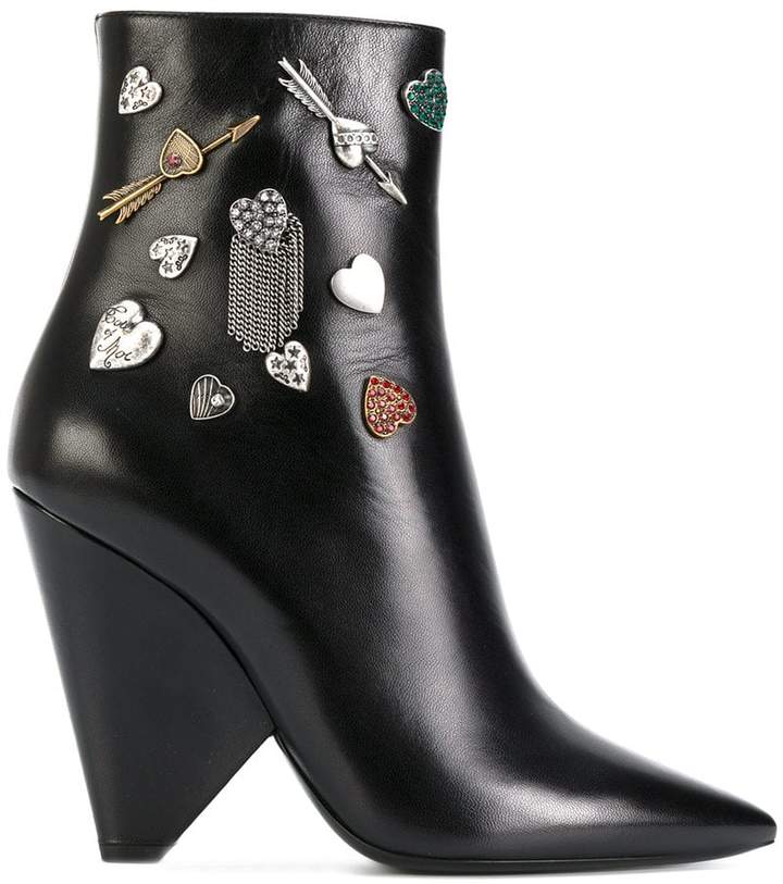 Saint Laurent Embellished Niki 85 Asymmetric Boots – $1,395
