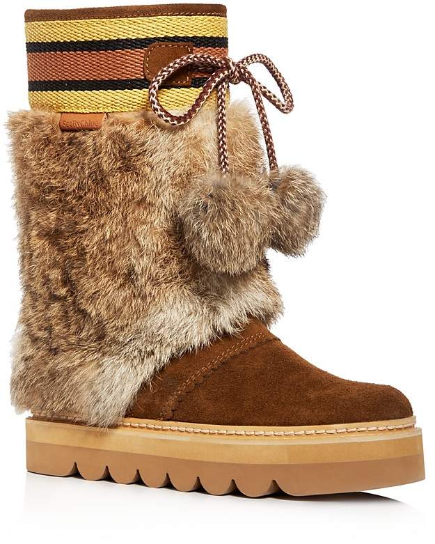See by Chloé Women’s Oxana Suede and Rabbit Fur Platform Boots – Sale $346.50