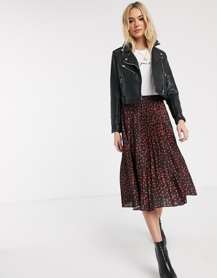 ASOS DESIGN Pleat Midi Skirt in Polka Dot Print – $40