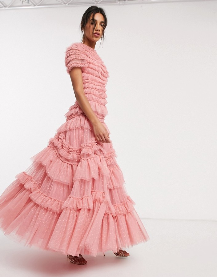 Needle & Thread Layered Tulle Maxi Dress in Rose Pink – $605